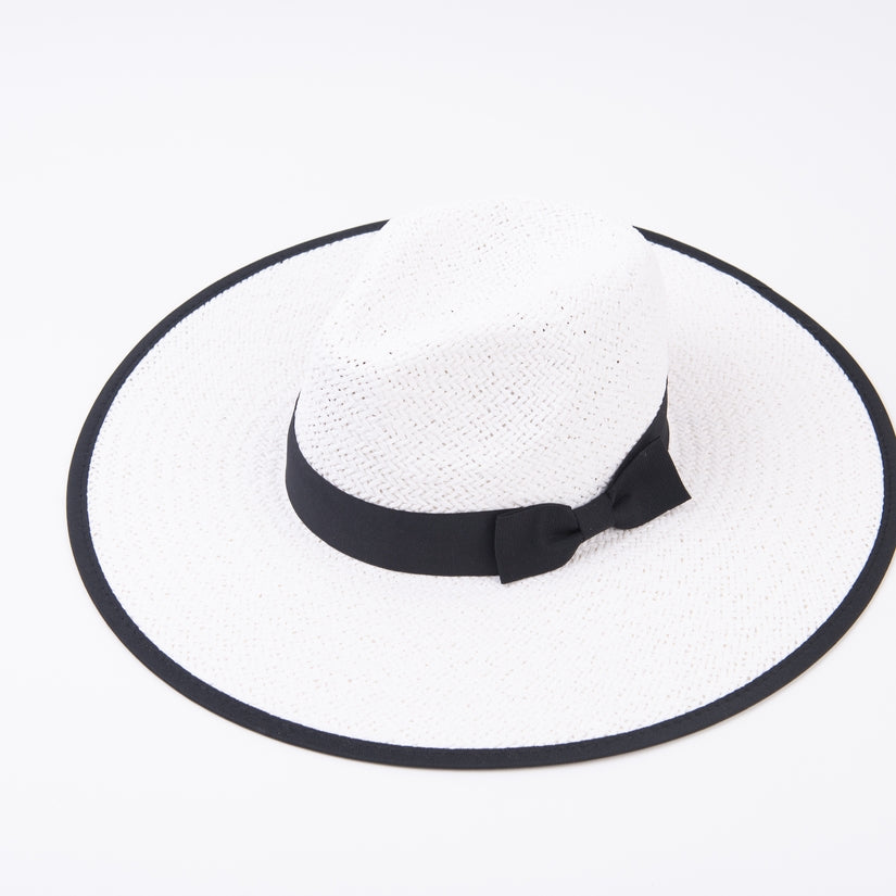 Enjoy extra coverage with the wide brim straw 'Aruba' hat (100% paper), with a classic black edged brim and ribbon detail.