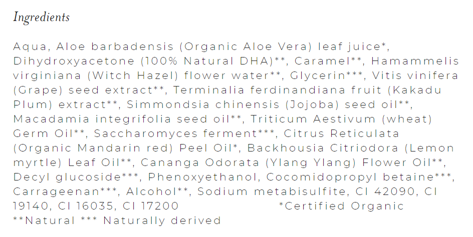 - Contains 100% natural DHA (tanning active) as per EcoCert standards.